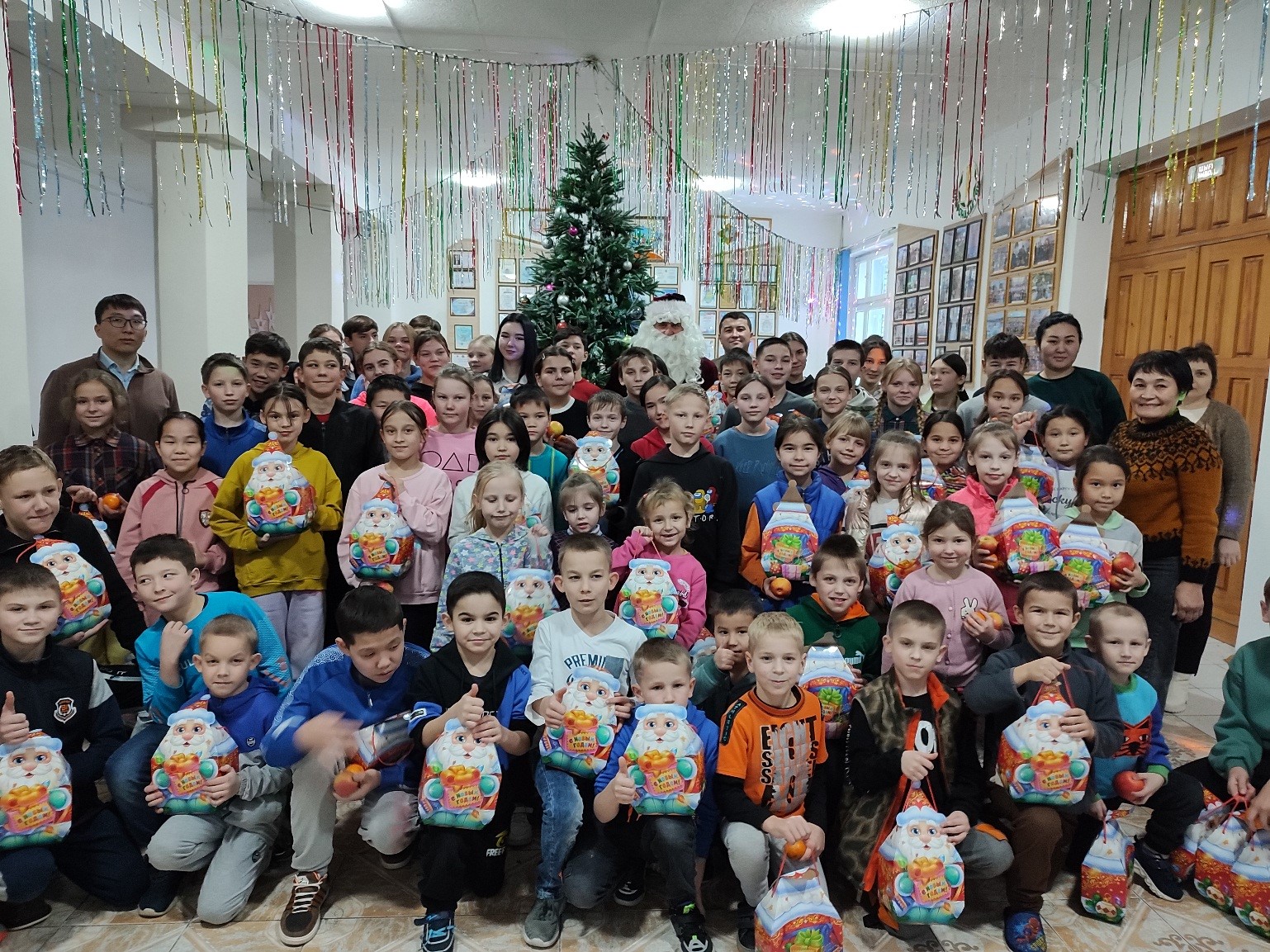 Балалар үйінің тәрбиеленушілері қонақтар мен Аяз Атаның келуіне орай, керемет концерт ұйымдастырып, ән айтып, би билеп, өлең айтты.